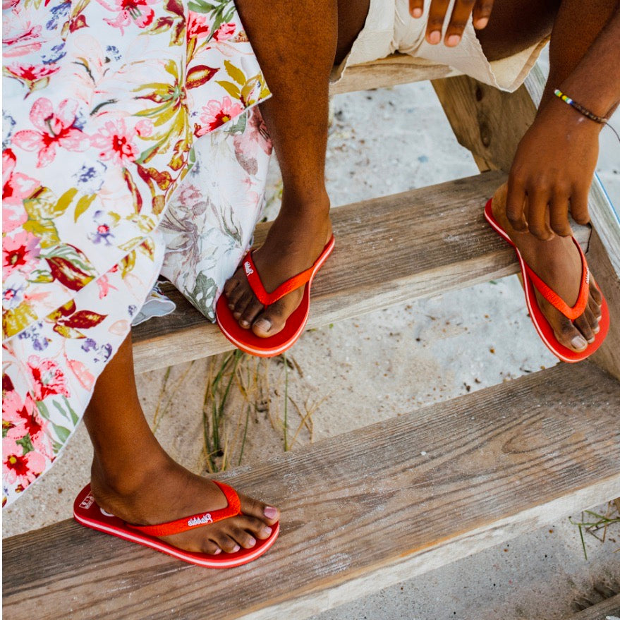 Everyone knows how it feels to be on vacation; that blissful aura you exude when you know you don’t have to get up early for work or to school. It’s all about sleeping in and visiting your favourite holiday destination. Our bright red Plakkies have got us reminiscing about a particular beach; the Lookout beach in Plettenberg Bay.